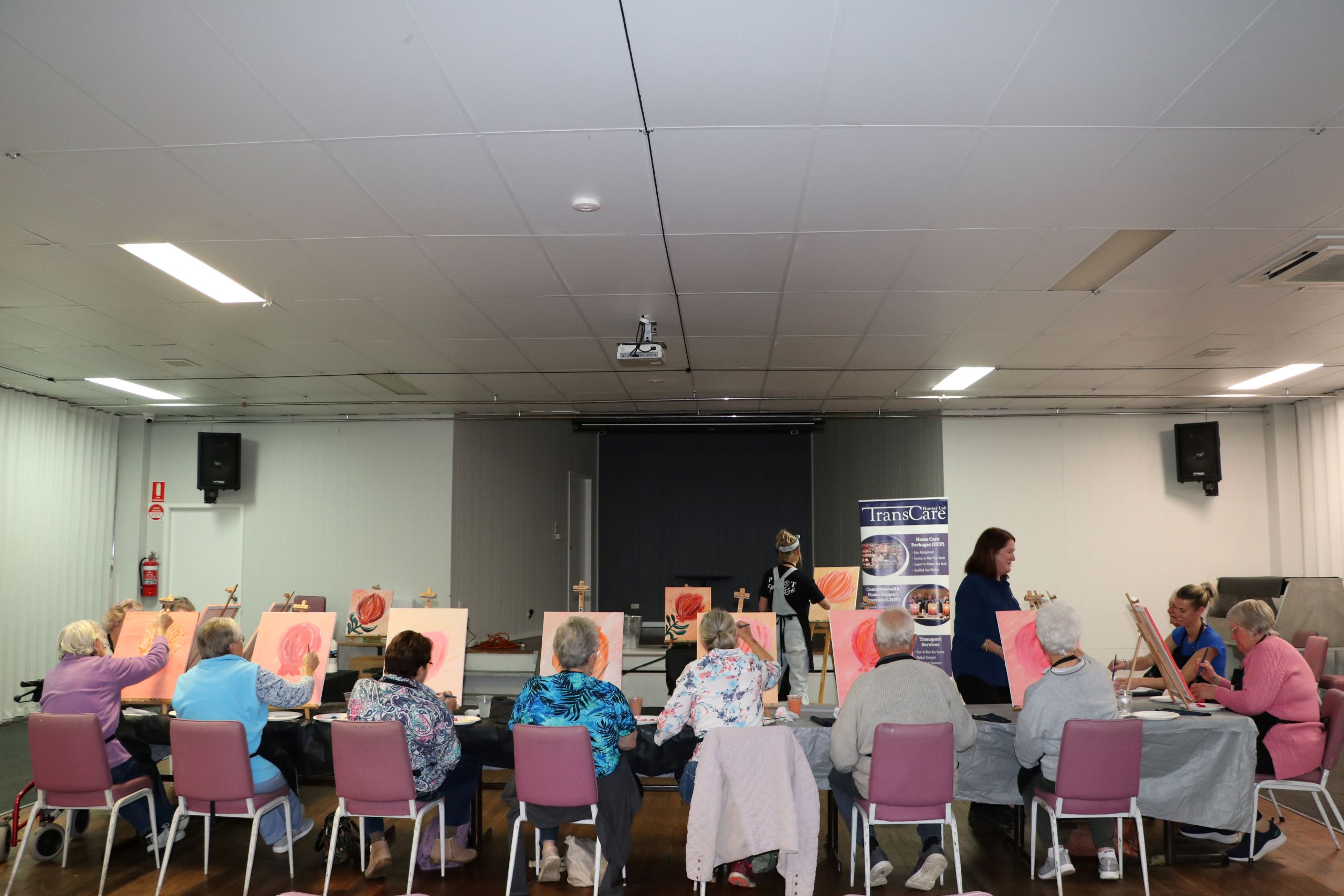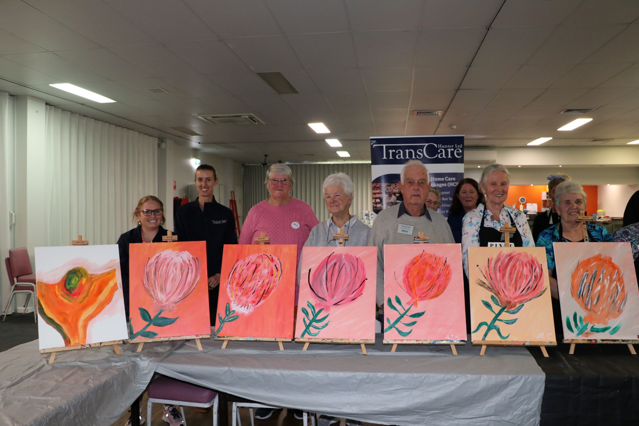 TransCare held it's 'Fun with Art' workshop yesterday morning at Aberdeen Bowling Club. Everyone enjoying painting there own interpretation of the King Protea Flower. TransCare would like to thank Sheridan from the Pinot & Picasso.